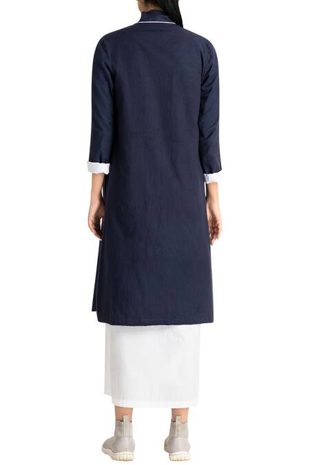 Blue Cotton Twill Long Jacket