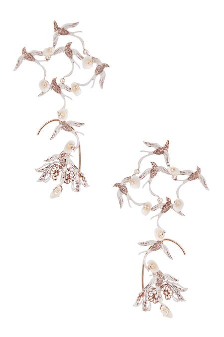 Gold ear cuff featuring 3D Lophorina bird motifs and swirl shells