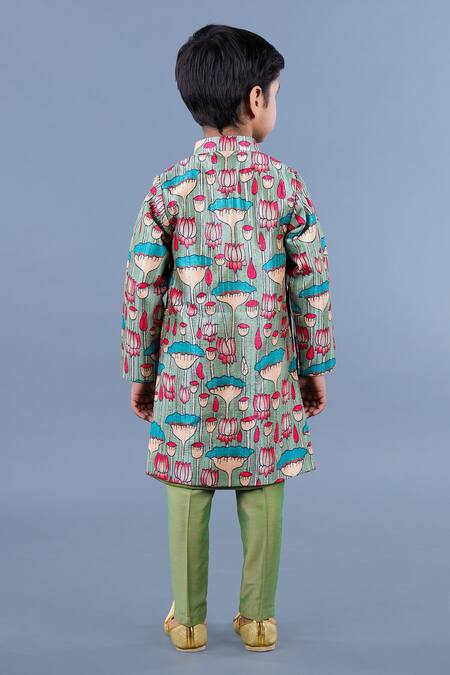 Buy_Shining Kanika_Multi Color Poly Chanderi Print Lotus Sherwani Kurta Set_at_Aza_Fashions