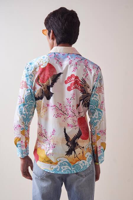 Multi Color Cotton Embroidery Flaminglet Print Shirt
