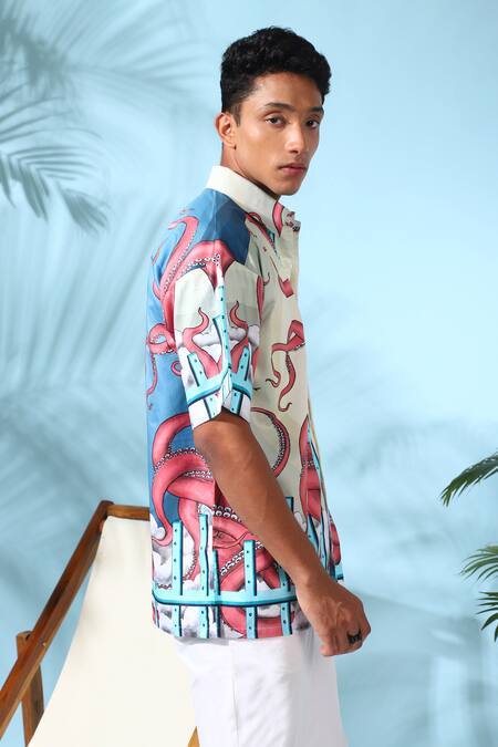 Striking kraken print design, Vibrant multi-color scheme, Unique collar design