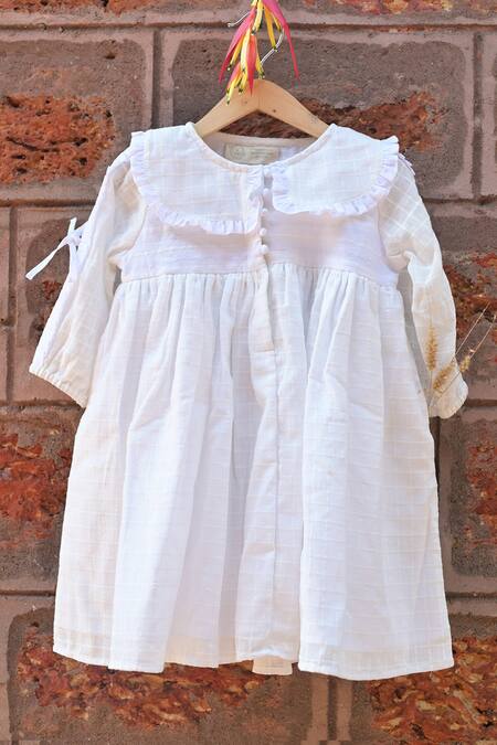 White Handloom Cotton Spring Peter Pan Collar Dress