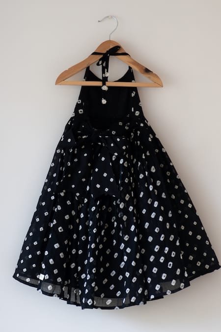 Black Cotton Tara Bandhani Halter Maxi Dress