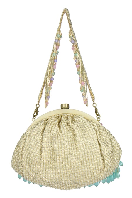 Multi Color Embroidery, Beads Opal Embellished Soft Pouch