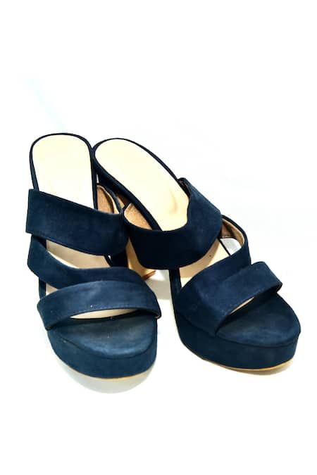 Buy_Foot Fuel_Blue Embroidery Maali Round Toe Block Heels _at_Aza_Fashions