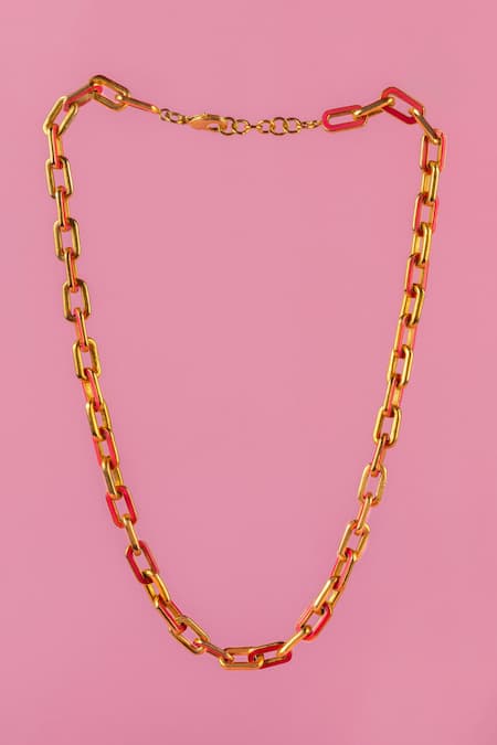 Gold plated choker featuring pink enamelled links with a lobster clasp closure
