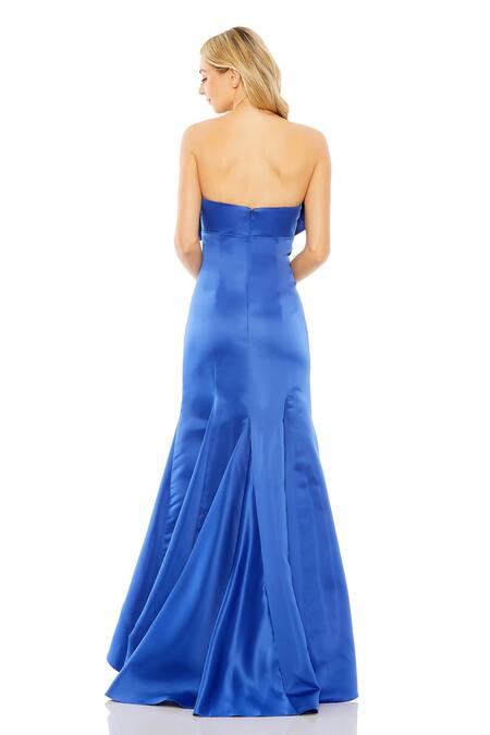 Blue Polyester Bandeau Neck Cobalt Asymmetric Mermaid Gown