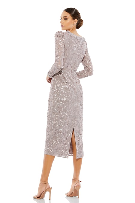 Mac Duggal_Purple Polyester Beads, Sequins Round Neck Embroidered And Midi Dress_Online_at_Aza_Fashions