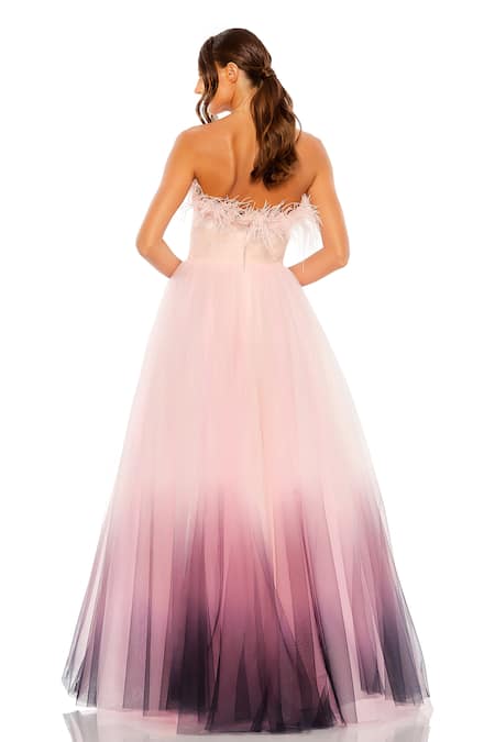 Pink Polyester Feathers Off-shoulder Ombre Strapless Gown