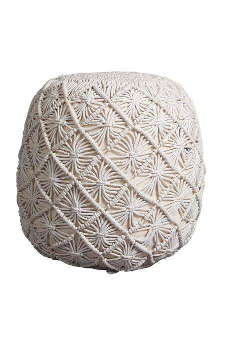 Geometric patterns, Product Finish: White cotton, Size L x B x H (in cms): 38 x 38 x 42, Weight (kgs): 1.46, Note: Only selling the ottoman pouf, Disclaimer: Products are handcrafted; there could be slight variation in the product from the image