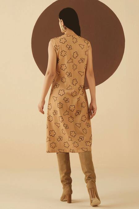 Brown Cotton Twill Macy Draped Printed Dress