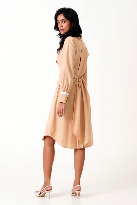 Buy_Madder Much_Brown Handloom Cotton Collared Gwen Tie Back Shirt Dress _Online_at_Aza_Fashions