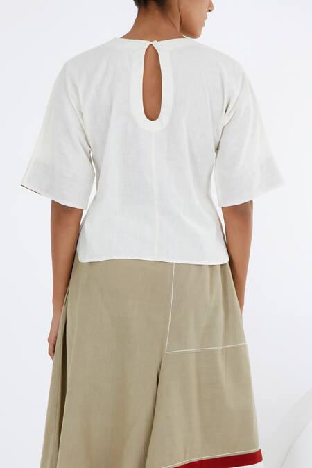 Natural white crop top made from 100% handloom cotton featuring a round neckline and half sleeves