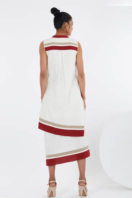 White Cotton Collared Sachi Color Block Layered Dress