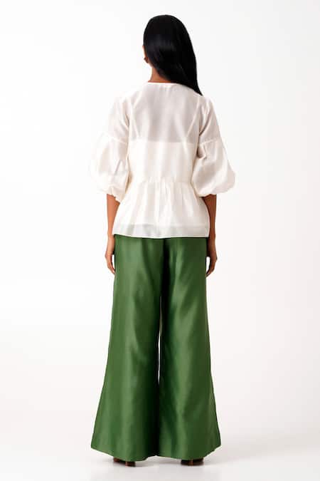 Ivory Handloom Cotton Round Neck Toni Woven Peplum Top With Inner