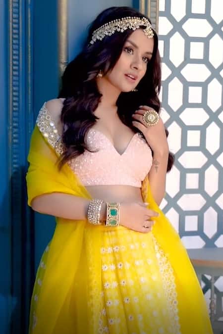 Yellow Organza And Georgette Sequins & Floral Embroidered Lehenga Set