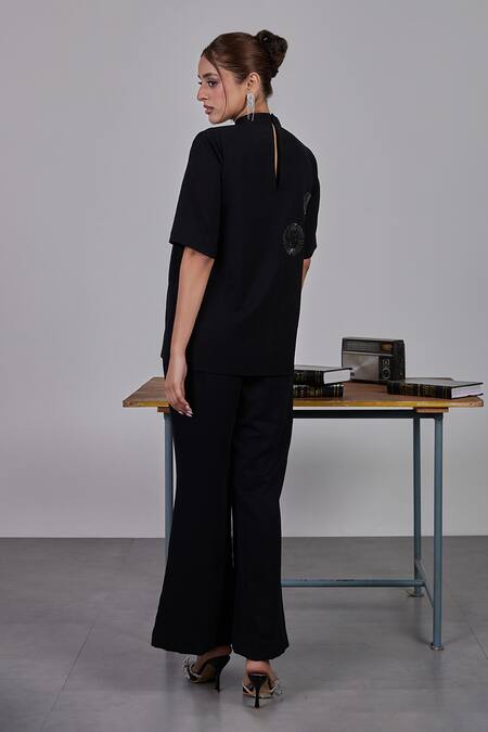 Buy_Maenaam_Black Polyester Embroidery High Neck High-neck Top With Embellishments_at_Aza_Fashions