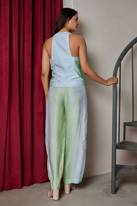 Green Modal Halter Neck Glacia Top And Straight Pants Set