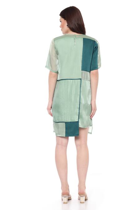 Green Organza Round Neck Color Block Oversized Shift Dress