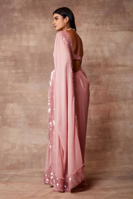 Buy_Neeta Lulla_Pink Chiffon Maeve Sequin Border Saree With Blouse_at_Aza_Fashions