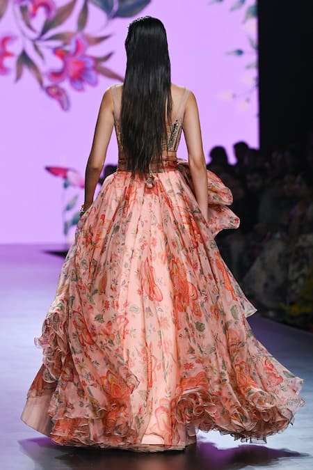 Buy_Mahima Mahajan_Beige Organza, Net Sequins, Arni Floral Print Overlap Panel Lehenga With Blouse