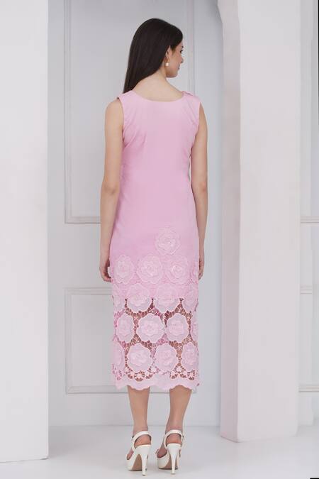 Pink Cotton Embroidery Square Neck Crochet Dress