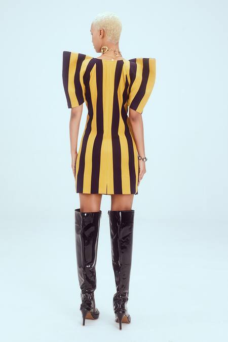 Yellow Kota Doria V-neck Stripe Pattern Blazer Dress