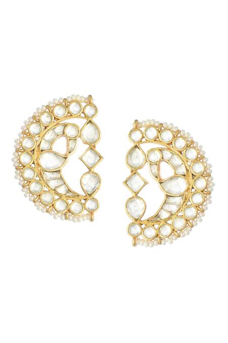 Gold peacock ear cuff earrings featuring jadau kundan embellishments