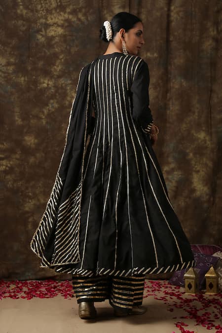 Black anarkali with gota work detail. Comes with flared pant and dupatta.