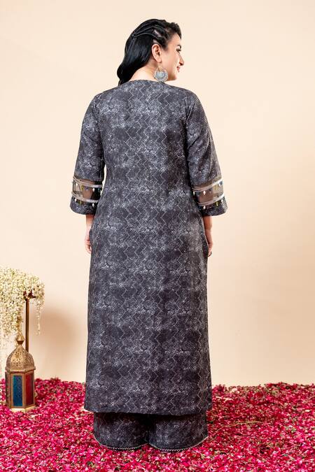 Intricate embroidery detailing on the cape sleeves, Attached inner slip for added comfort, Wide-legged pant with side slits for style