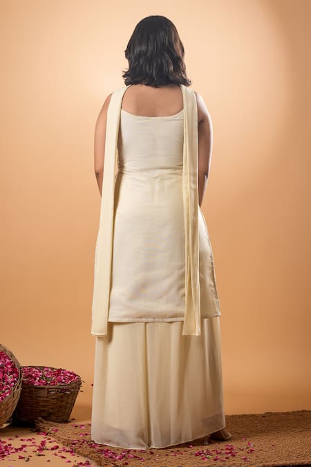 Ivory Cotton Embroidery Round Neck Kurta Pant Set