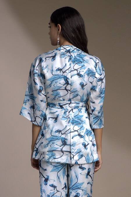 White Satin, Georgette Embroidery V-neck Floral Pattern Wrap Around Top