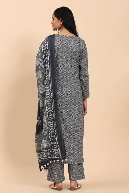 Gray Cotton Embroidery Round Neck Grey Kurta Set With Dupatta