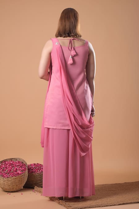 Pink Cotton Embroidery Square Neck Peacock Kurta Set