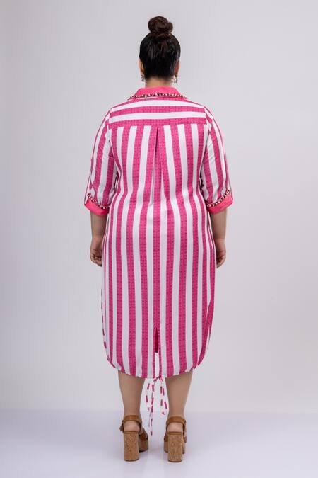 Pink Satin, Crepe Collared Striped Shirt Dress