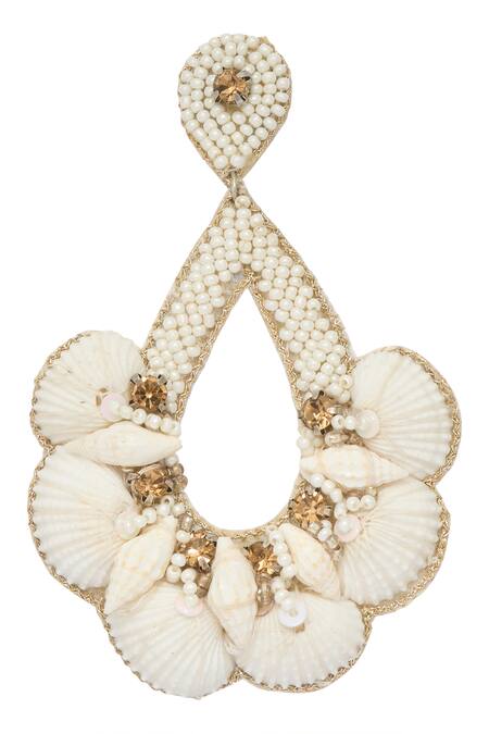 White Beads, Smocking Aloha Embellished Drop Earrings