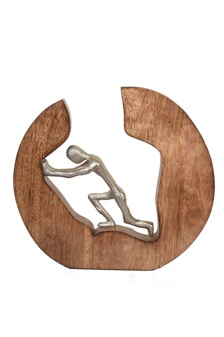 Brown Wood And Aluminium Man Pushing Limits Sculpture
