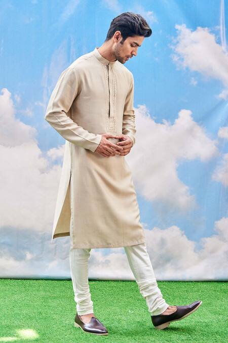 Beige Silk Viscose Blend Mandarin Collar Kurta Set