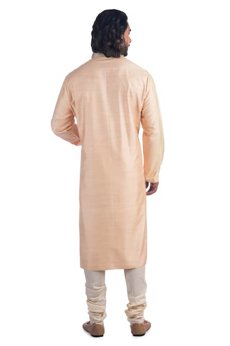 Peach 50% Silk Plain Mandarin Collar Kurta Set