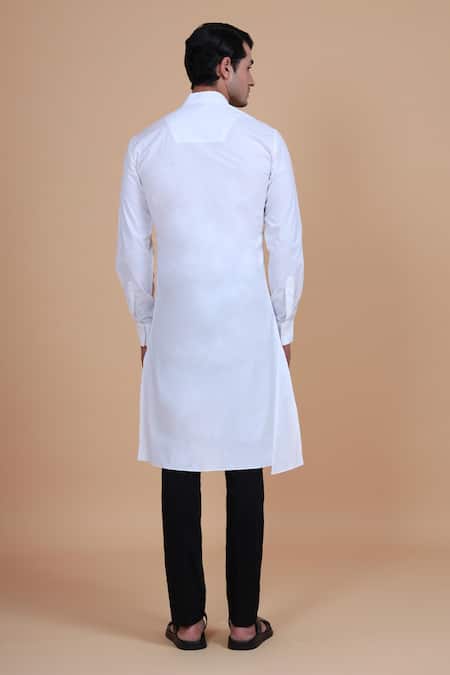 Buy_Raghavendra Rathore Blue_White Cotton Satin Plain Mandarin Collar Kurta_at_Aza_Fashions