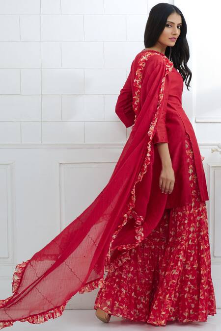 Red Chanderi Round Kurta Sharara Set