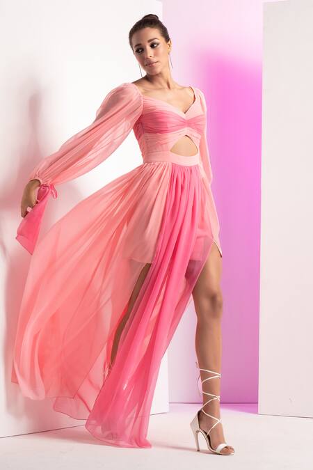 Ruched bodice with a front slit, Cut-out waist design, Back zip closure for ease