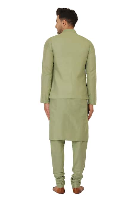 Buy_Manish Nagdeo_Green Cotton Silk Quilted Bundi And Kurta Set _Online_at_Aza_Fashions