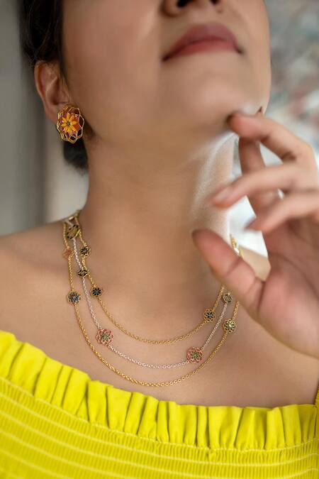 Buy_Manner_Multi Color Gold Plated Enamelled Tri Layered Necklace_at_Aza_Fashions