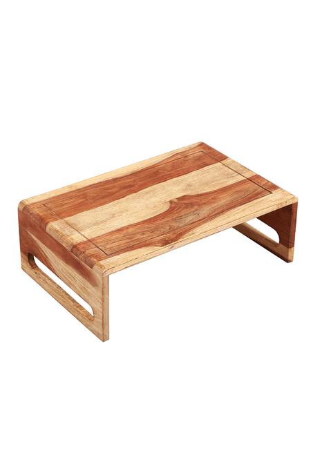 Side cut-outs, Product Finish: Natural wood, Size L x B x H (in cms): 50 x 32 x 17, Weight (kgs): 3.02, Note: The glass & laptop shown in the image is not for sale, Disclaimer: Products are handcrafted; there could be slight variation in the product from the image