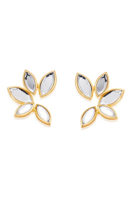 White stud earrings featuring marquise mirror embellishments