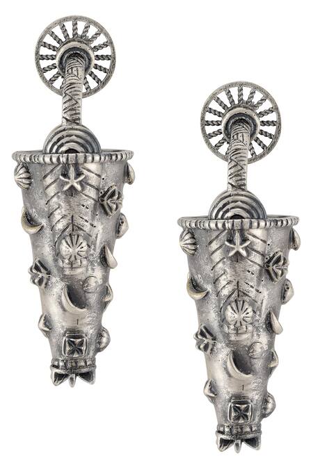 Silver Plated Cut Work Coast Charm Bucket Carved Earrings