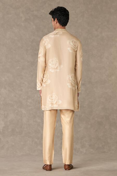 Beige Raw Silk Printed Gulaab Kurta