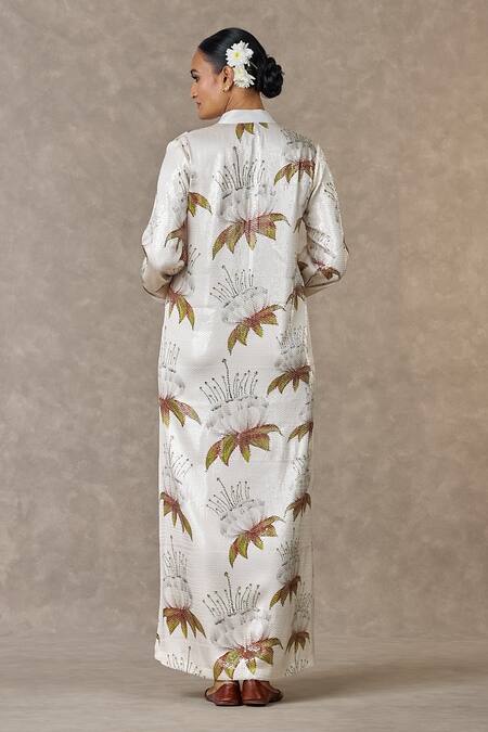 Ivory kurta featuring all-over water sequin embroidery and multi-color floral print