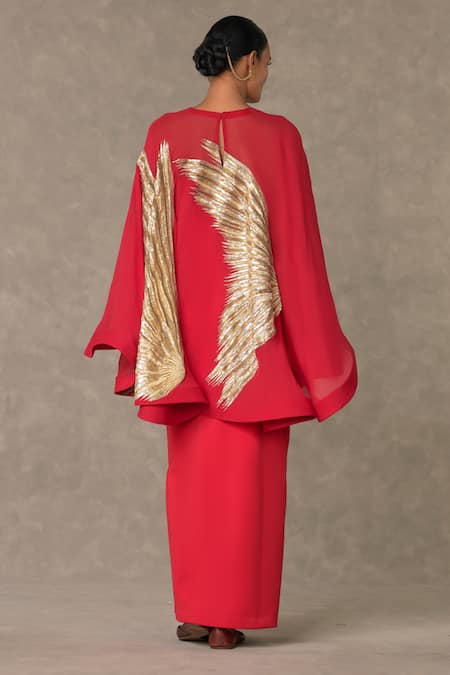 Red Gown Scuba Embellished Sitara Cape Round Son Chidiya With